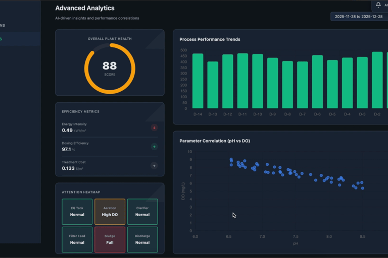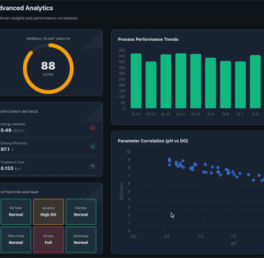 Continuous monitoring of ETP/STP parameters like flow, pH, DO, turbidity, level, and pump status with automated logging, exception alerts, and compliance‑friendly reports for pollution control board submissions.